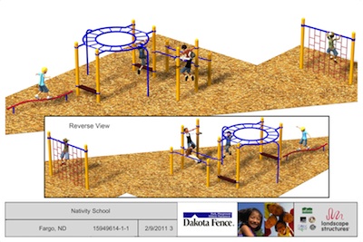 - Upon approval of a final design by the Nativity PTO Board and the ability of Sports Court of Fargo (Deckmaster) and Dakota Fence to work within the given timeline, the Committee will work to complete installation of the new playground play station by the beginning of the 2010-2011 academic year;