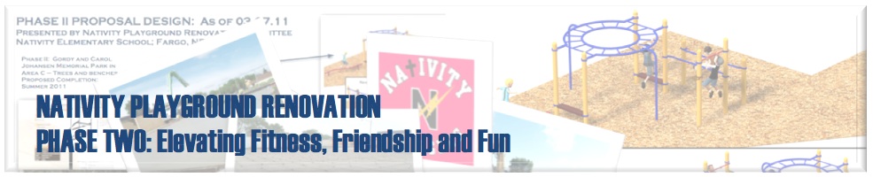 Running concurrent to the Phase I project (play structure), it was further assessed the playground area needed to be advanced to meet the exercise and fitness needs of the Nativity students through additional fitness stations and sport court. On April 23, 2009, the Nativity PTO Board recommissioned the Playground Renovation Committee to further investigate the possibility of implementing a Phase II component of the playground renovation process.