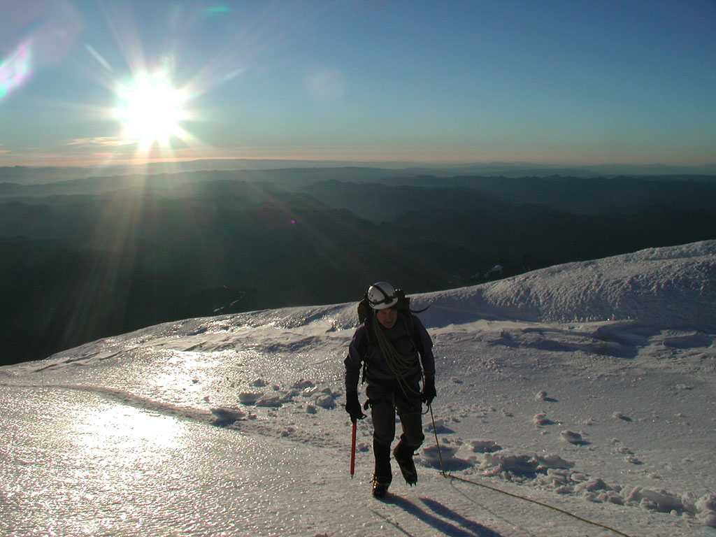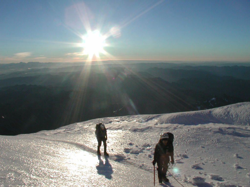 reaching the highest point of Mt. Rainier, Columbia