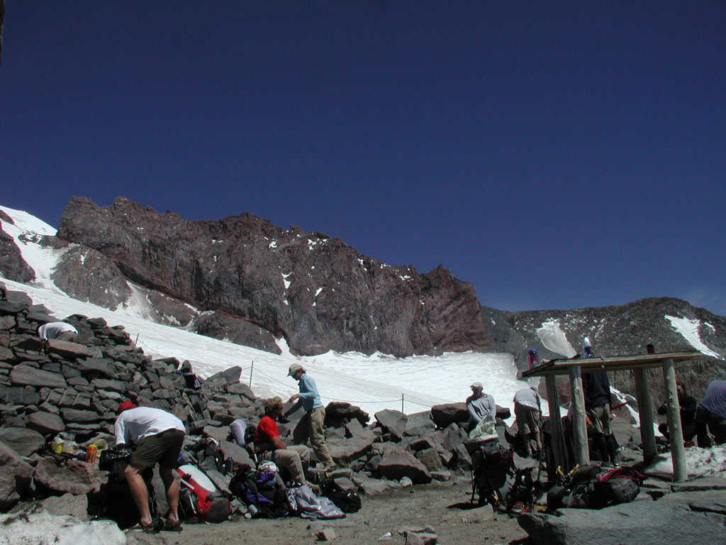 back to Camp Muir at 11:30 am, Summit Team A packs up